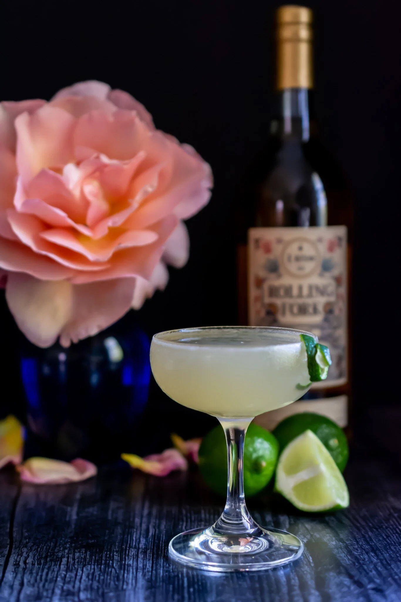 Shake ingredients in tin and fine strain into a chilled coupe. Garnish with a lime wheel.