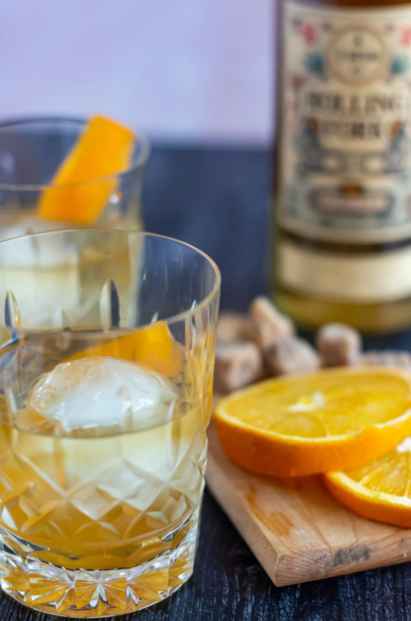 Lightly muddle orange peel with a sugar cube and a tablespoon of water in a rocks glass. Add rum and bitters. Stir until sugar is completely dissolved. Add a large ice cube and stir again briefly. Garnish with orange peel. ⠀